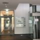 Indoor Stelen als Wegweiser in Bürogebäuden. Hier exemplarisch aus Edelstahl mit Acrylglas und Echtglas planbar. Je nach Anforderung auf den Millimeter gefertigt um wie hier perfekt in eine Wand eingelassen zu werden.